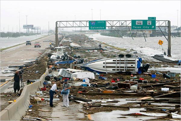 Watching all the news coverage last night of Hurricane Ike battering Galveston, Texas, I couldn’t help but remember my trip down to the island this past February and wonder just how much of what I saw was still there. The Hotel Galvez, where I stayed, is/was right on the water, and I’m sure it took quite a beating — along with plenty of other hotels and buildings, which were so nicely restored after the Great Storm of 1900. I wonder if things are alright in the Strand, including at La King’s (where Ernest Torres made the great taffy), and I hope all the nice folks I met back in February who took such great care of us (like Jackie and Jim) are okay. And hopefully people like George Mitchell, who threw one hell of a party for Mardi Gras, are also safe.