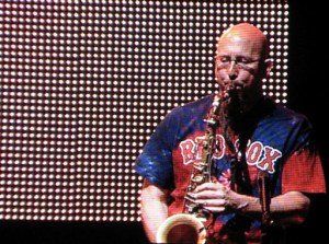Impressive new sax player Jeff Coffin (again, wearing a Red Sox shirt), violinist Boyd Tinsley, guitarist Tim Reynolds, and the freakishly happy drummer Carter Beauford were nothing short of a force to be reckoned with during the final third of the show’s main set, with “Crush,” “#41,” “Rhyme and Reason,” “Time Bomb,” and “Two Step” all giving them a chance to dominate.
