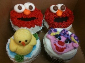 This past weekend, I brought her some cupcakes that were decorated in the style of things she does like: Elmo, Abby Cadabby, and ducks. (They came from Party Favors in Coolidge Corner.)