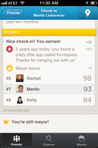 Instead of telling people you did something or went somewhere, now you could say where you were at that very moment, and if your friends were close by, they could meet you there. If you went to a place often enough, you could be its Mayor, or you could earn other badges or perks.
