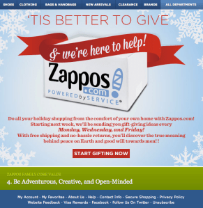But I’d like one of two things to happen — if not both. First, for marketers to be a little more respectful of my inbox, like Zappos is every year when they send an email alerting me about their increased frequency during the holiday season. Yes, it’s a bit excessive to send three marketing messages a week instead of one, but I don’t mind as much because Zappos sends that heads-up message, acknowledging that this frequency is above and beyond what I’m used to, and letting me unsubscribe if I wish.