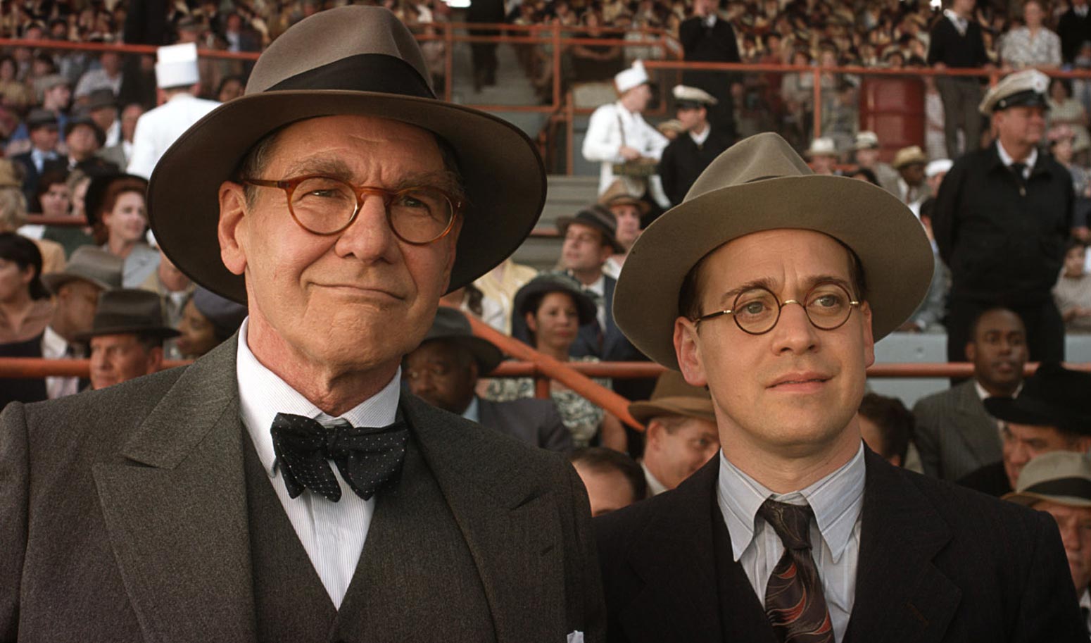 No one except Branch Rickey (Harrison Ford), general manager of the Brooklyn Dodgers. After declaring that “dollars aren’t black and white. They’re green,” Rickey in 1946 sets out to hire the first black player. Screw anyone who’s resistant to this move; Rickey’s gonna make it happen, dammit.